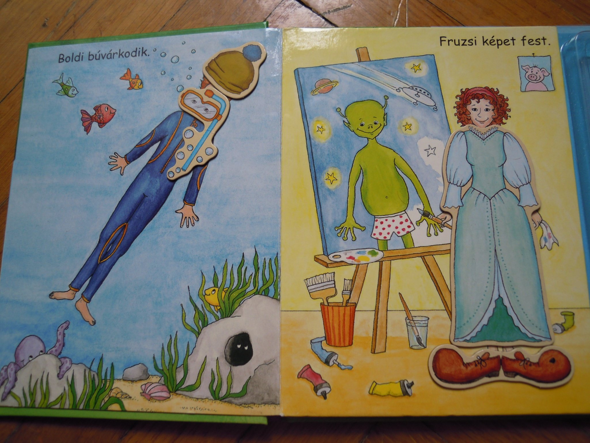 Cserébe viszont a gyerekeknek mindent megenged. Szerintem azt gondolja, hogy benne van a fajtaleírásában, hogy szemrebbenés nélkül elviselje, amint a nagyobbik gézengúz ugrál a hátán, tapossa a dínós szandijával, célirányosan nyomkodja a szemgolyóját, szakavatottan vizsgálja képzeletbeli kötőhártya-gyulladását, a kicsi meg húzgálja a fülét és seprűvel takarítja (erről homevideó is készült, tömeges érdeklődés esetén felteszem facebookra). Bár miután a válogatott kínzások tűrésén kívül gyakorlatilag semmilyen más elvárást nem támasztottunk vele szemben, talán nem is olyan nagy dolog ez.