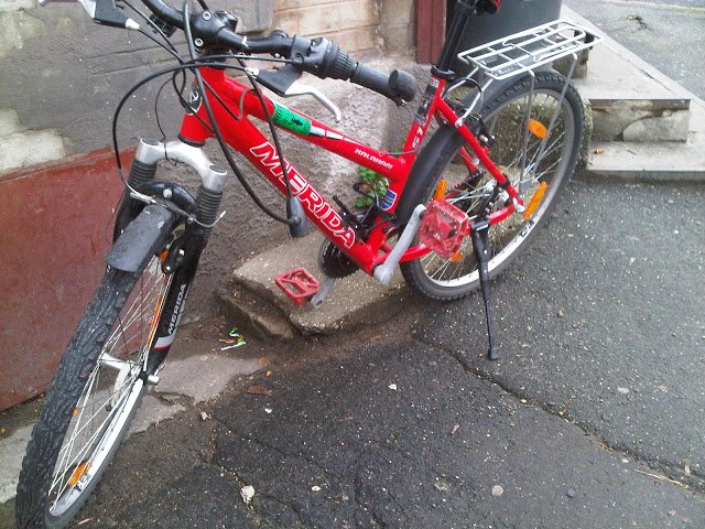 Visszafelé jövet is ott állt még, ekkor kiszálltam és jobban szemügyre vettem. Előjöttek a régi szép emlékek. Saját pénzemből vettem az egyetem első évében, gyerekkorom óta nem volt biciklim. Szép piros Merida, a piros pedál nem ám szériatartozék, külön fizettem érte. Több ízben próbálták ellopni tőlem, pedig nem egy vagyont érő darab, negyvenért vettem újonnan, mert már csak ez árválkodott a boltban az előző évi kollekcióból, nagyon rá akarták már sózni valakire. Én meg pont ilyenre vágytam.